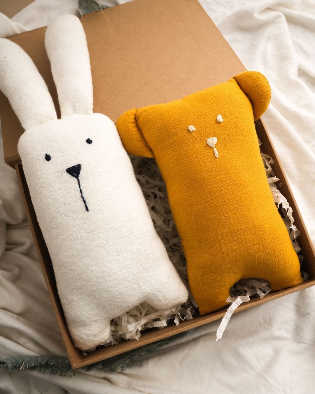 Soft Cuddle Buddy is a lovingly handcrafted plush toy set made from eco-friendly bamboo terry and gentle cotton fabric.
