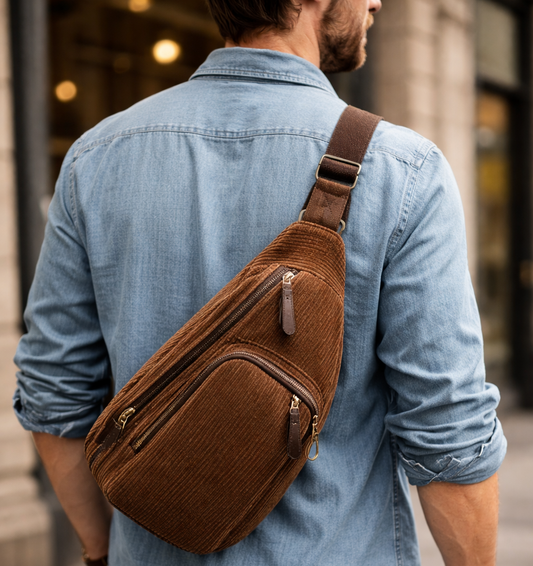 Corduroy accessories feel premium yet practical because the fabric naturally balances texture, comfort, and durability. Its signature ridged weave gives depth and richness to the surface, creating a refined look, while the strong structure allows accessories to hold shape and handle daily use with ease. Corduroy is soft to the touch but resilient at its core, making it comfortable to carry and reliable over time. As it ages, the fabric gains character rather than wearing out, which adds to its sense of quality. This blend of tactile luxury and everyday performance is what makes corduroy accessories both elevated and effortlessly usable.