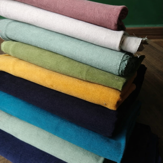 Corduroy fabric is woven from cotton fibres and known for its distinctive soft ridges, natural warmth, and comforting texture. It is durable, breathable, and designed to hold its shape through everyday use while remaining gentle to the touch. Over time, corduroy develops character, growing richer without losing strength.
